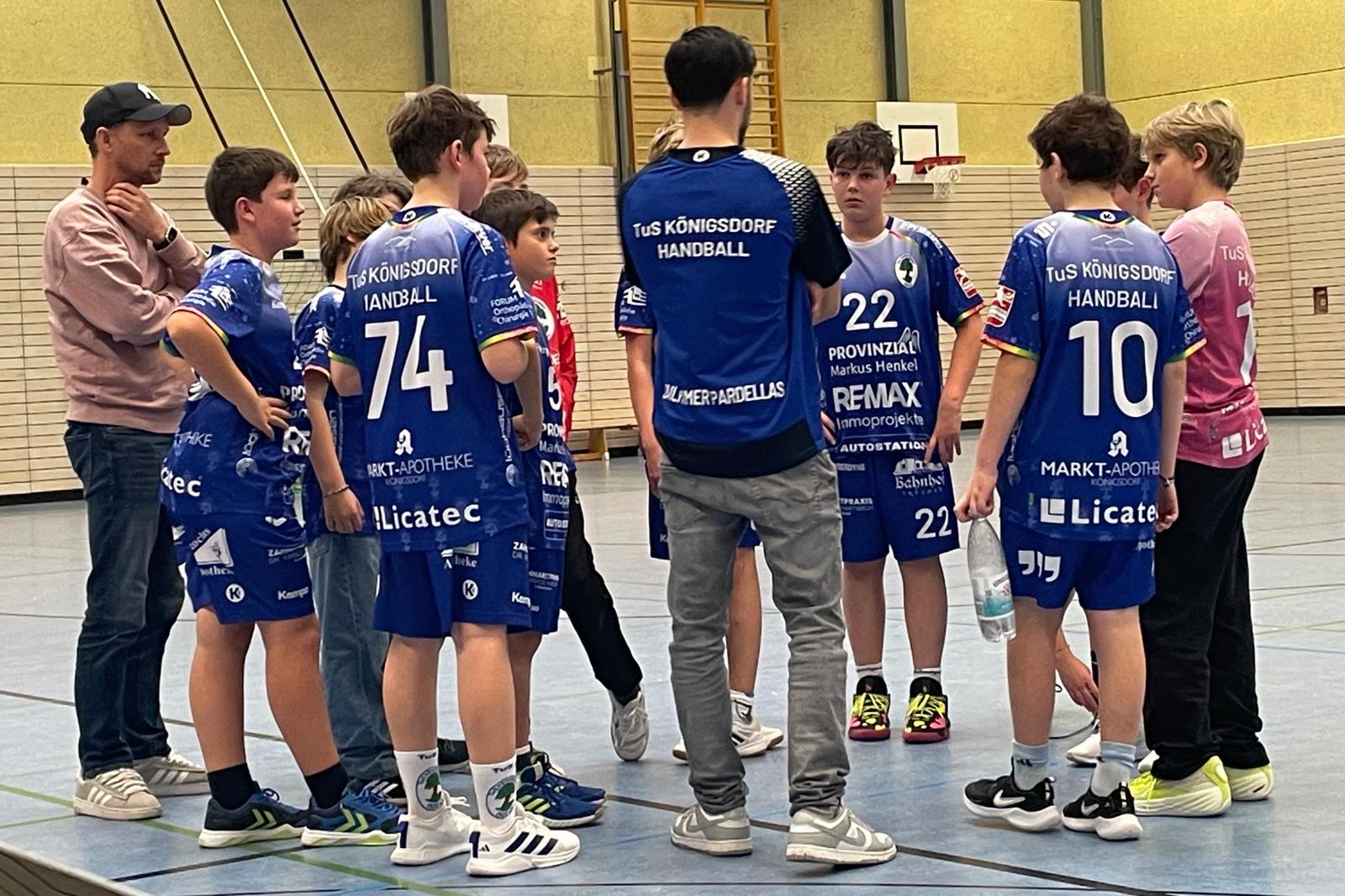 Am 29. November traf die männliche D2 des TuS Königsdorf auf die Mannschaft aus Leichlingen. Die Anfangsphase verlief jedoch alles andere als optimal: In den ersten zehn Minuten fanden wir kaum ins Spiel und führten trotz deutlicher Überlegenheit lediglich mit 4:2. Durch fehlenden Fokus und mangelnde Konsequenz im Abschluss konnten die Gegner gut mithalten.
